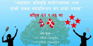 जनसम्पर्क समिति डेनमार्कले ब्याडमिन्टन प्रतियोगीता गर्दै