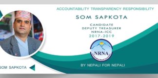 एनआरएनए सह-कोषाध्यक्ष पदमा डेनमार्कबाट सापकोटाको उमेद्वारी घोषणा
